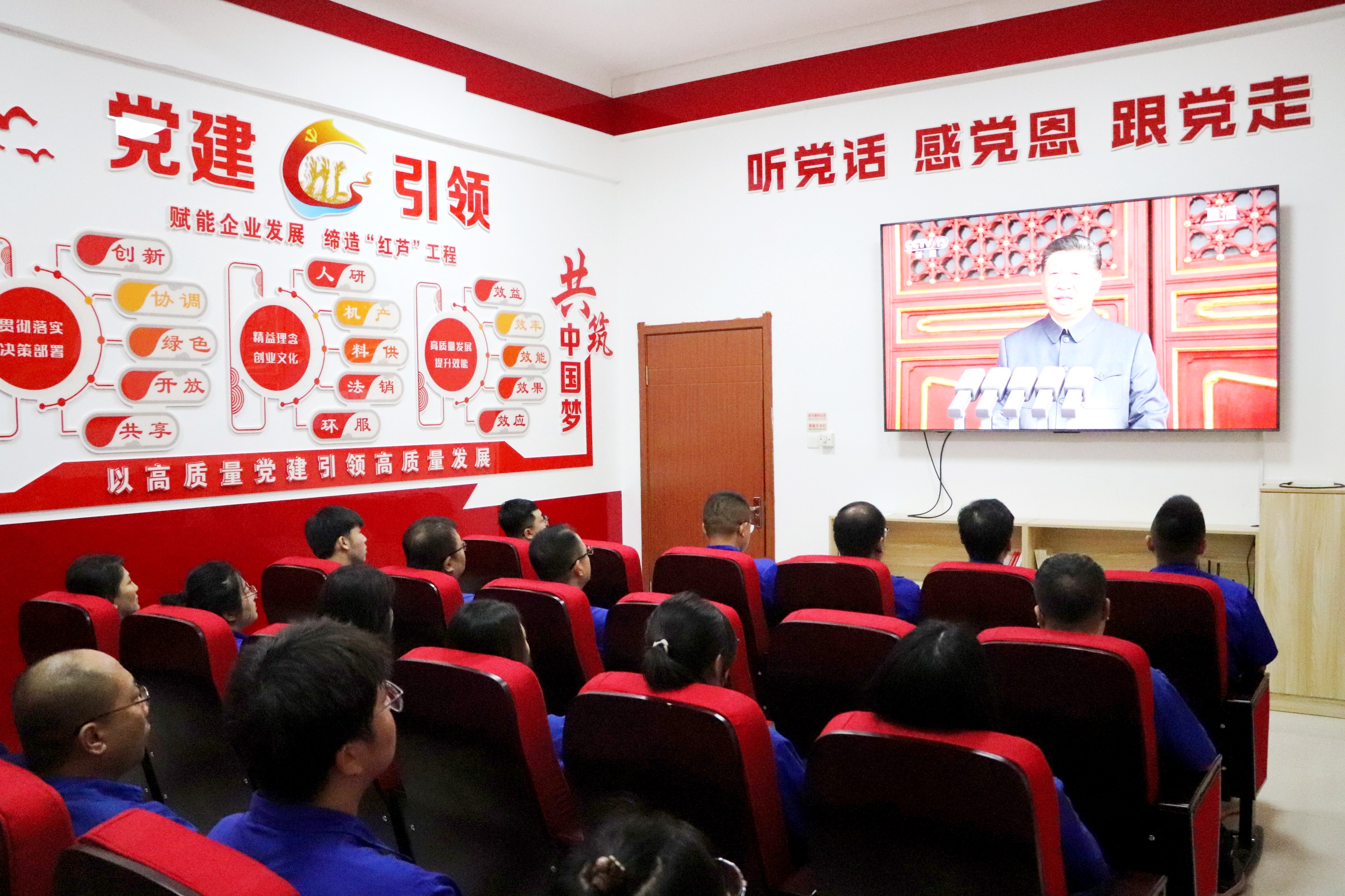 天安門廣場上受閱部隊氣勢如虹,廠區電子屏幕前職工神情專注,盤錦合力以一場精心組織的觀看活動,...